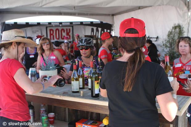 The SRAM booth converted this afternoon into a women's lounge with a specific event happening.