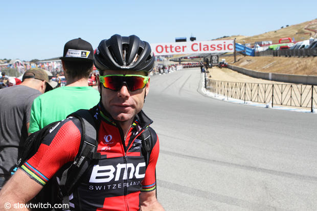 Cadel Evans has raced here a few times, but was just a regular fan as the pro men were about to start the short track race.