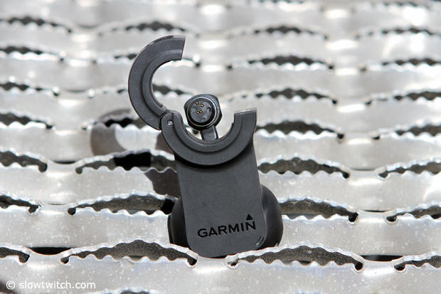 Garmin brought the new Vector2 pods to the Sea Otter Classic. The pod now features a hinged attaching point and that means the pedal will not have to be removed to mount it. The material is now a hard plastic and it also features LED lights that display setup and maintenance information.