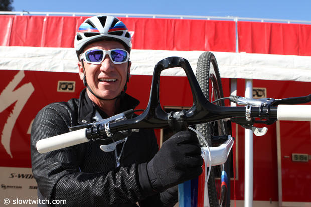 Robert Egger of Specialized is the man behind many great ideas and he added this short aero section to his MTB bars, for days when he does longer rides by himself.