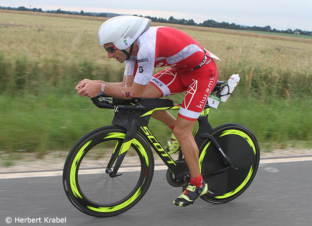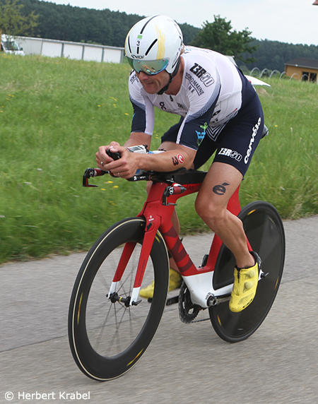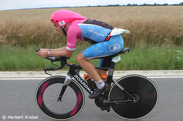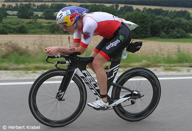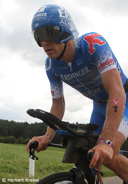 The defending champion Nils Frommhold chased hard but lost more time to the 2015 Ironman World Champion.