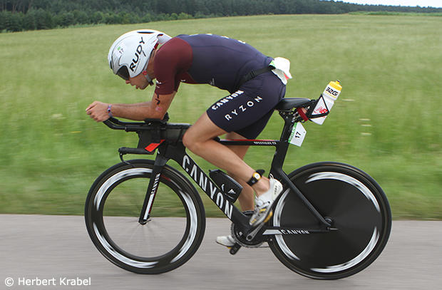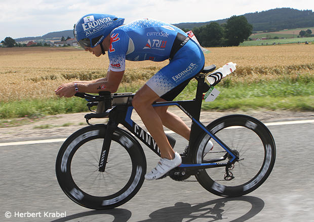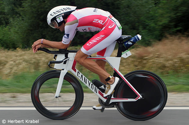 A fully focused Frommhold towards the end of the bike segment.