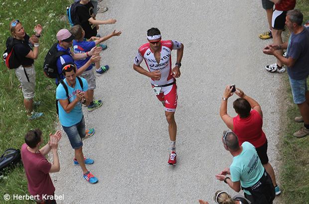 Jan Frodeno ran well too on this moderately cool day in Roth and pulled further and further away from the competitors.