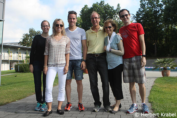 This family with the very appropriate Roth last name is from Calgary, Canada and they are traveling for a month in Europe and a week here in Roth where 3 of them are racing here for the first time. From left to right are Michelle Roth (supporting), Sarah Roth (racing), Rob Roth (racing), Murray Roth (racing), Ruth Roth (supporting) and Paul Tarjan (supporting).
