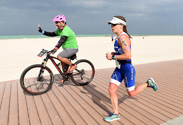 Dubai, the high-rise jewel of the United Arab Emirates, welcomed a small but talented pro field and a sold out field of age groupers to its well-run Ironman 70.3 contest. Strong winds led to a shortened swim in the protected waters of the Jumeirah Marina and mild midwinter temps left all hands tired and happy.
