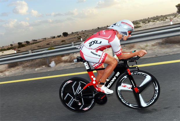 Jan Frodeno sliced through the brisk winds to a day’s best 2:02:33 bike split and the $20,000 win.