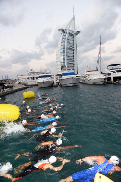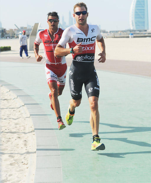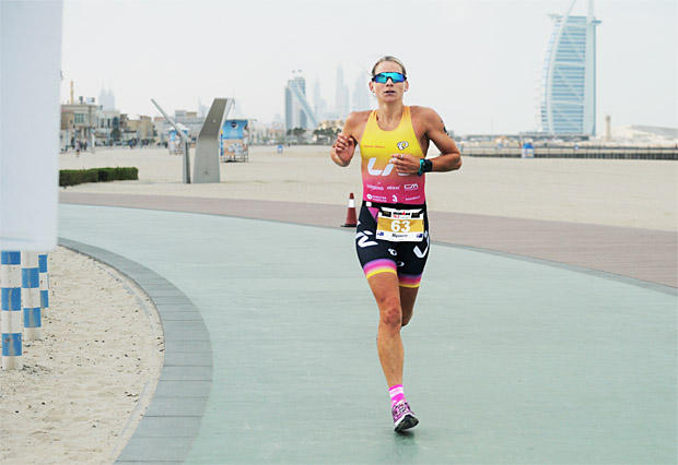 Dubai, the high-rise jewel of the United Arab Emirates, welcomed a small but talented pro field and a sold out field of age groupers to its well-run Ironman 70.3 contest. Strong winds led to a shortened swim in the protected waters of the Jumeirah Marina and mild midwinter temps left all hands tired and happy.