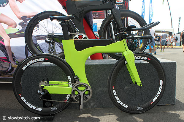 Cube unveiled this new C68 bike in Kona today and we will soon share a detailed gallery. Notice the low seat stays and the slot behind the headtube. This is the type of bike Andreas Raelert will be racing