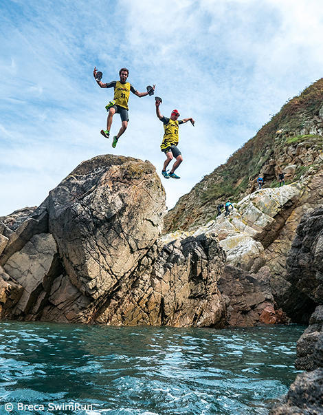 Miles Franklin and Graham Donald leap into the waters – Breca SwimRun Jersey photo