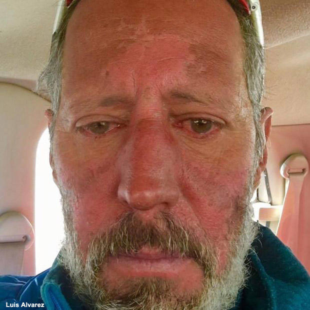 “When I tried to open my eyes it was the most horrible pain you can imagine because those two organs have a lot of nerves. And the oxygen burned my eyes. Do I take the oxygen and spend 13-15 hours without oxygen at 27,300 feet? I was not feeling bad from altitude or headache. I was not conscious of anything but the pain of my eyes…. Without speaking the same language, my sherpa was pulling a rope attached to me. The signals were simple. Up. Down. Left or right. Every few steps I fell and he had to pick me up. That was very, very stressful without seeing and going backwards. I don’t know how I am here! Thanks God!” – On the descent after summiting Everest in May, famed Ironman Luis Alvarez developed snow blindness, which made his descent perilous and painful. He has fully recovered.