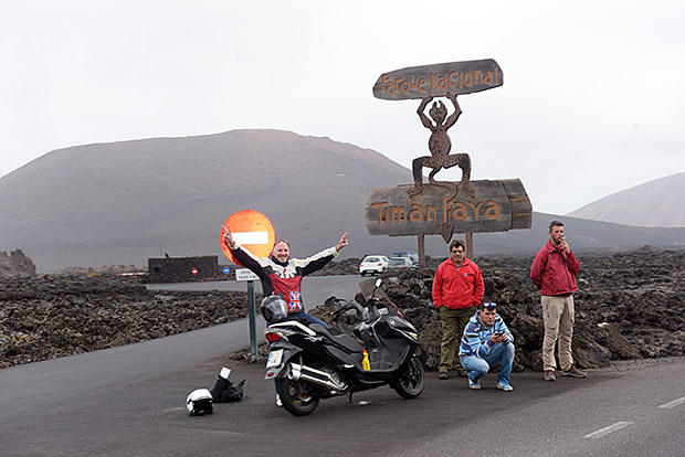 Race crew takes a break under a sign celebrating Lanzarote’s surfing spots.