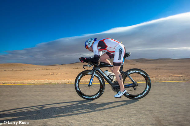 Netherlands pro Eddy Lamers charges on the Israman 226 bike course.