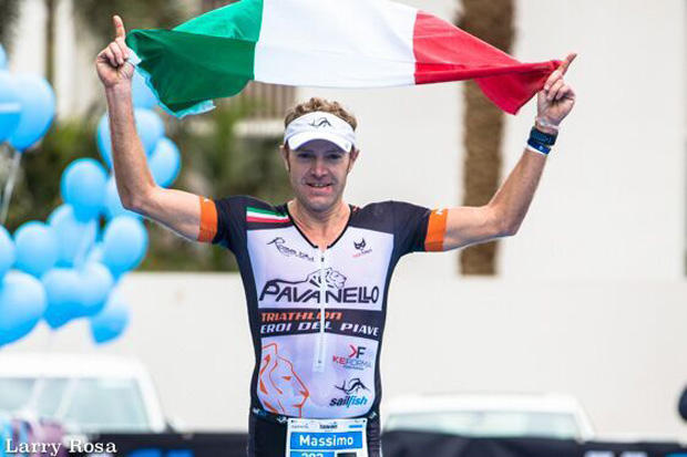 Massimo Cigana of Italy ran 1:22:14 to place second in Israman 113.