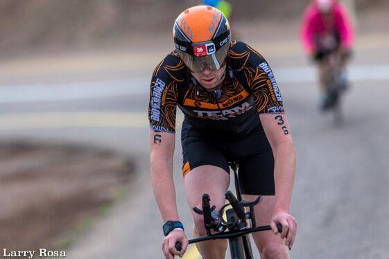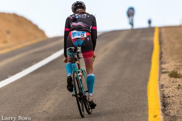 Women's Israman 113 winner Jenny Fletcher attacking one of the steeper grades on the 2,700 foot climb which begins the bike leg.