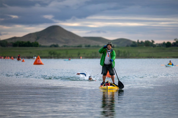 PC triathlete Rian Smoak and his team prepare for the swim start.