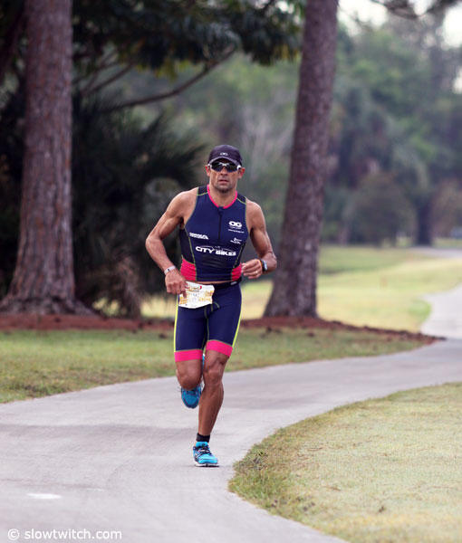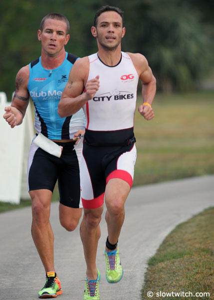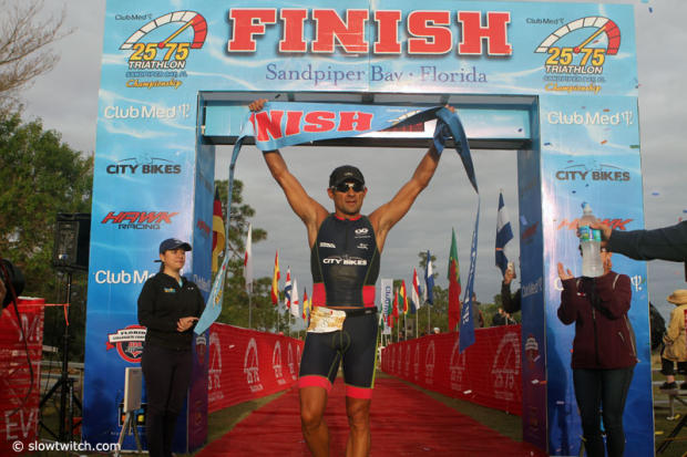Club Med Academy coach Tommy Allore had a tough battle in hand but charged ahead to take third in the Elite amateur race.