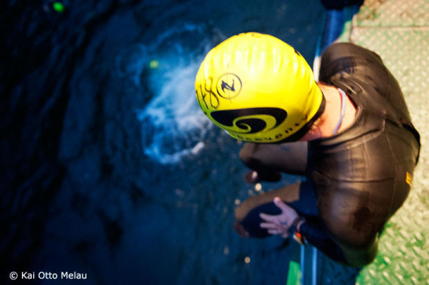 Bjorn Anderson led the field during the swim.