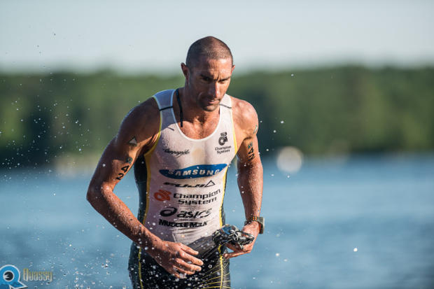 James Cunnama lead off the bike but ended up in second place.