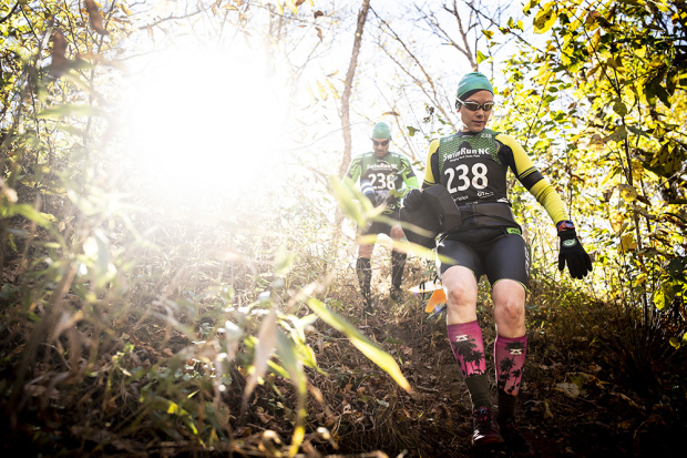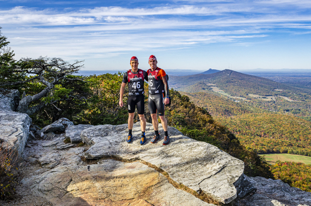 Jacob Gilden and Liz Baugher took charge of the mixed division early on and were determined to stay up there. In the last race in 2019 Gilden broke his toe way up on the mountain and had to hobble to the finish, and this time they wanted to come back uninjured and still married.