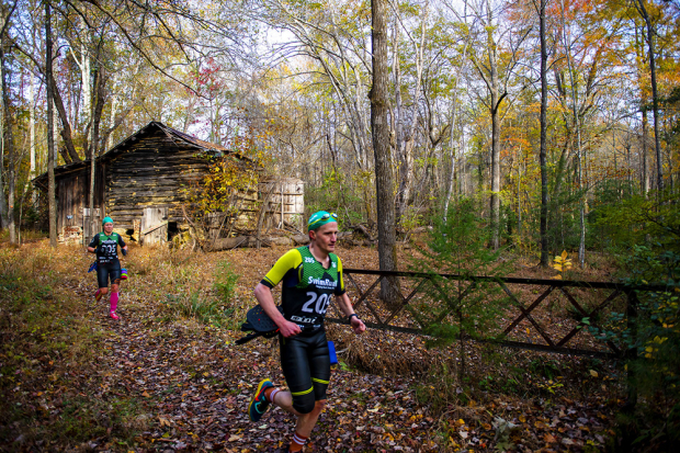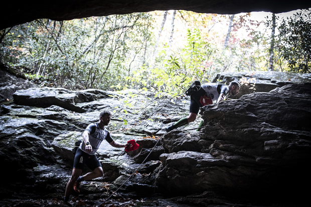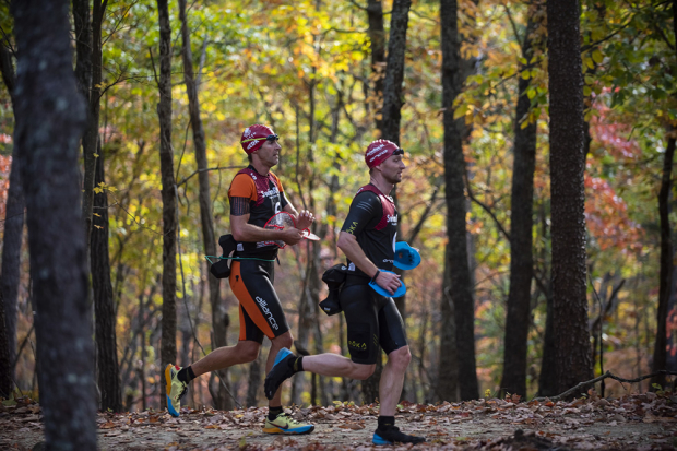 Brian Primeaux and Jacob Dodge were 2nd by on top of Moore's Wall by about a minute, but on the very technical descent they caught race leaders Starykowicz and Shoemaker and then quickly disappeared out of sight. By the time they reached the 5th swim they had another minute lead.