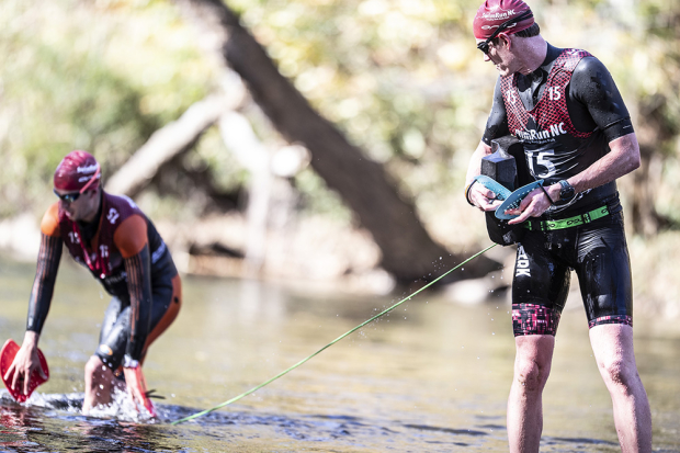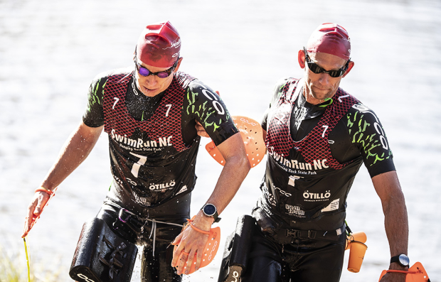 Jonathan Story and Tim Ferguson were wearing the silver bibs as the second ranked male team from the 2019 US SwimRun season. But with all but one race cancelled or postponed in 2020, they had to wait until 2021 to wear it in NC. Story and Ferguson were 7th in the end.
