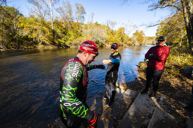 Jarrod Shoemaker led the runs and Andrew Starkowicz the swims for team FAST Racing, and after a couple of cold swims Starykowicz gave the slightly shaky and gibberish talking Shoemaker a hand exiting the water.
