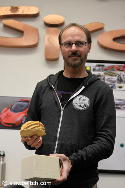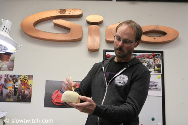 Senior Industrial Designer Greg Marting is Mr Helmet at Giro, and he showed here how a half scale model gets sketched and further developed.