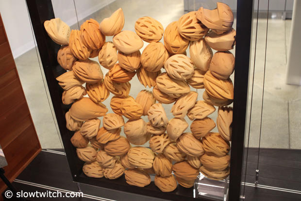 These aren't walnuts, these are hand carved half scale models of a variety of helmets.