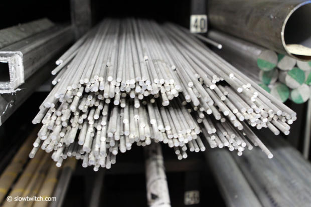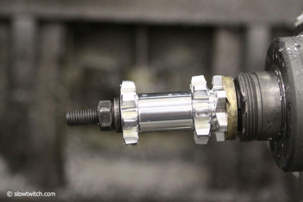 Four machines in a row spit out a spoke every 2 minutes or so.