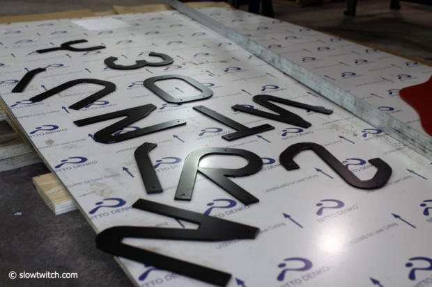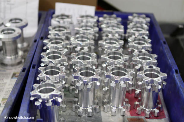 As you walk through the impressive facility you move past endless rows of machines where spokes, hubs, cassette bodies and much more are created and eventually anodized and laser etched. In one room the wheels are lovingly assembled, before being shipped out all over the world. But individual hubs and spoke sets are also leaving the facility to eventually be featured on trails or roads under passionate cyclists. We also noticed that the days without Industry Nine signage are coming to an end with a big metal branding effort currently on the way in one of the buildings.