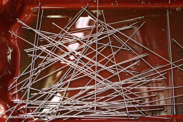 These racks held hubs and are now awaiting to be stripped before the next set goes on them.