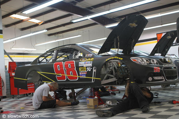 The crew works hard on the car for this weekend's race in Dover, Delaware and much has to be done before the departure on Thursday.