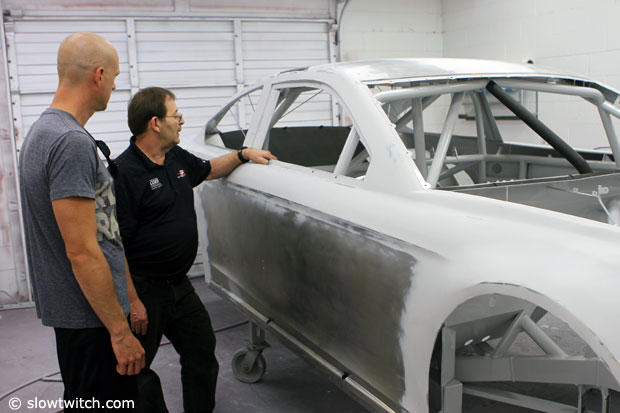 Meanwhile in the paint booth the car for the following weekend at Pocono Raceway is getting prepared.