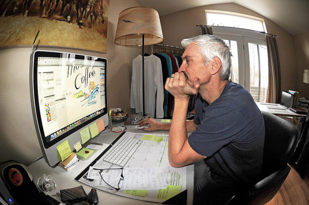 Before Summer and Poet get home from school, Tony works on some designs on his computer.