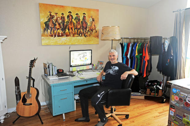 A large painting of the Magnificent Seven overlooks Tony’s home office.