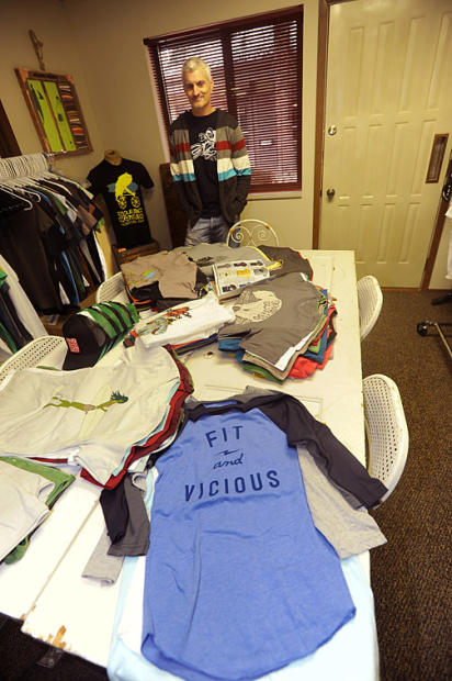 Tony looks over some of the tee shirts.