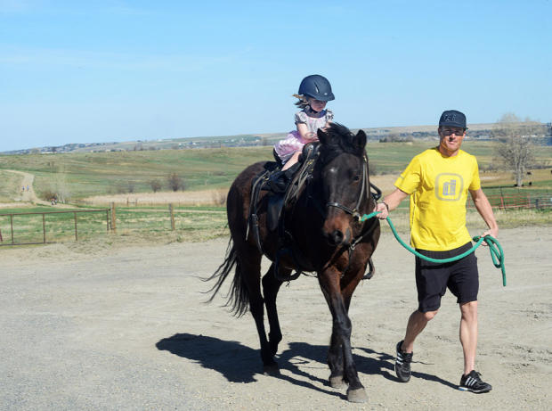 Tyler guides a horse owned by a kindly neighbor as Savana gets a much-anticipated ride at a North Boulder ranch.