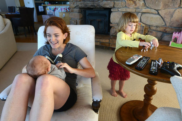 Tyler discusses with Nikki, who is nursing Walker, things to do that afternoon after lunch at Logan’s Espresso Café in North Boulder.