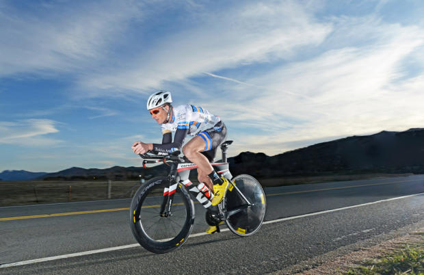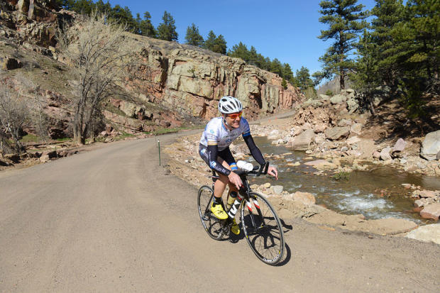 Tyler Butterfield rides his Cervélo P5 along a beautiful Colorado road not far from the family residence at the 7,400-foot altitude above Boulder.