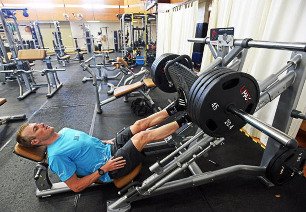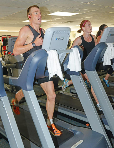 Tyler and Nikki put in a hard run workout on the treadmills at Flatiron Athletic Club in South Boulder.