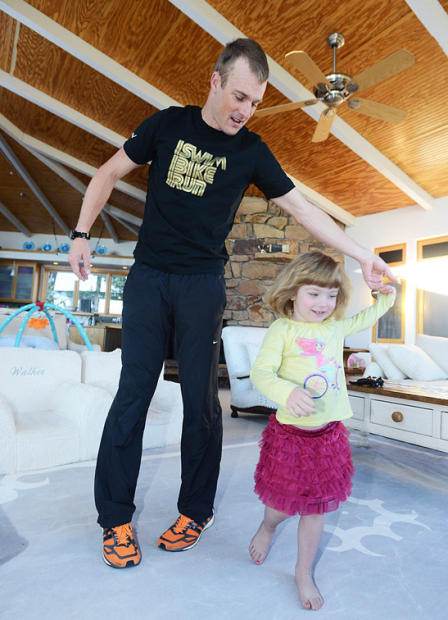 If some military organization was looking for someone with appropriate experience to plan a massive invasion, they would do well to look at professional triathletes raising young children. As Tyler Butterfield would attest, his wife Nikki, whose competitive résumé also includes a prestigious Abu Dhabi International victory, has been instrumental in his recent career breakthrough performances – a top 10 at Kona in October and a win at Abu Dhabi this March. While taking time off from training and racing during the pregnancy, birth and nursing their second child Walker and caring for their lively 3-year-old Savana, Nikki Butterfield has used her MBA skills to great effect in scheduling, coaching, organizing and plotting Tyler’s racing. At the same time, they share the complex ballet of raising, feeding, playing with and transporting their kids to and from school, doctors, and the occasional family outing. What you see here are pictures of a few days in the happy, hectic life of the Butterfield clan at home in Boulder, Colorado.