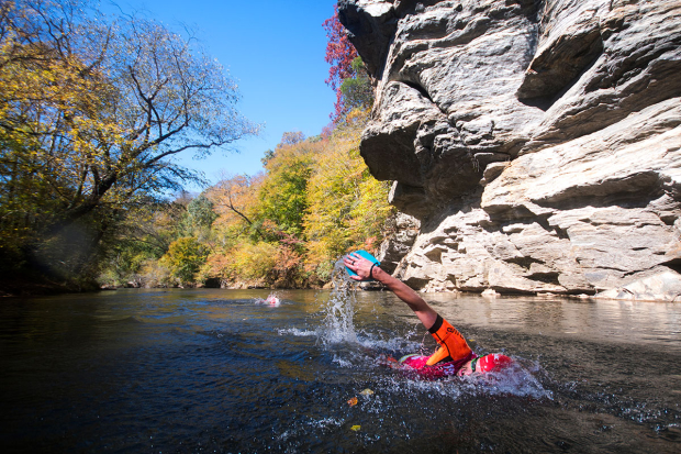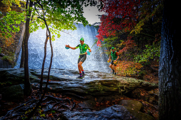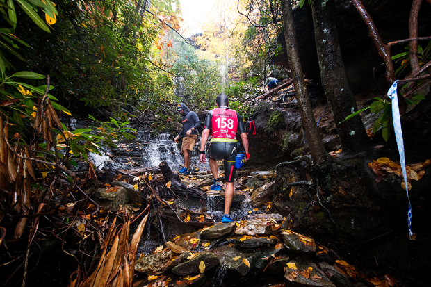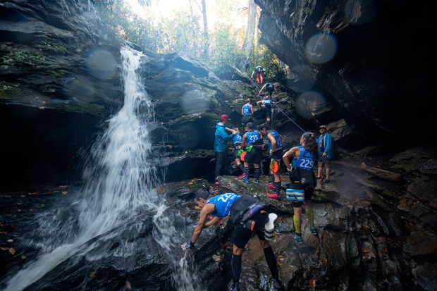 With the sun out for most of the race, the temperatures rose and spirits were high. Australians Leyla Porteous and Joanna Norman jumped in unison across a section in the Cascade Falls, on the way to 10th place in the female division.