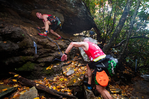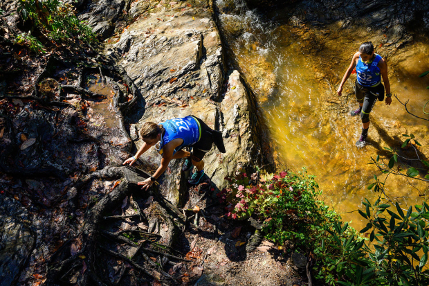 Canadians Art Chasovskykh and José LoMonaco traveled far to race in NC, but they enjoyed the experience and said they will be back again. Here they tackled the Indian Creek ascent just before the famed Window Falls section.