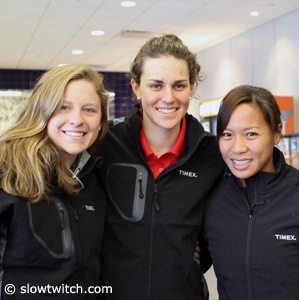 Jessica: Of course! Being a part of the Timex team is a huge honor. It was really exciting to reconnect with all of the athletes on the team. I have had such a heavy draft legal race focus so although I really never have the opportunity to see many of these athletes at races, we do keep in touch. It is quite amazing that athletes from all over the world come together for such a short time and recognize our common thread- a passion for health and well-being and the drive to push ourselves. The weekend was packed with fun and excitement, offering great "training tips," and of course we all threw in a little training, too. Due to extensive planning of the Timex staff, it was another successful camp this year. Timex is truly a unique multisport team led by some of the hardest working and genuine people I have ever met. To be a part of this family is remarkable and I look forward to seeing some big results from all of the athletes this season. With fantastic product sponsorships from Sugoi, Powerbar, Orbea, Shimano, TriSwim, Orca, Nathansport, The Tri Shop, Headsweats, Native Eye Wear, Triggerpoint, Powerbreathe, Wigwam, Justin’s Nut Butter, Beaker Concepts, and Genuine Innovations, all fifty athletes are ready for lots of training and fast racing. It should be a great year for Timex!