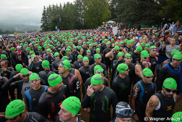 A couple thousand age group athletes await their long journey.