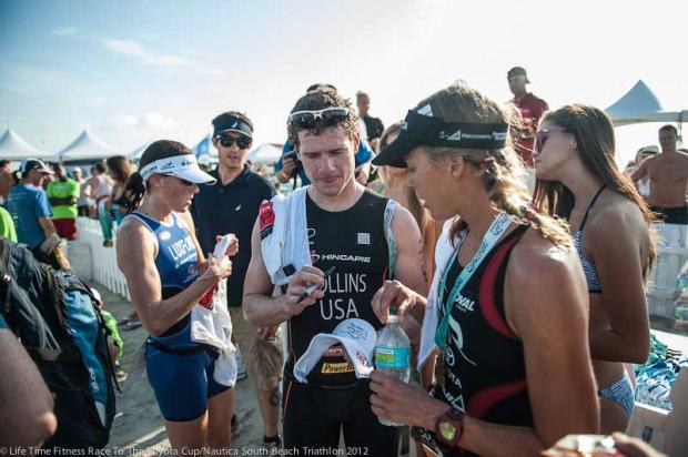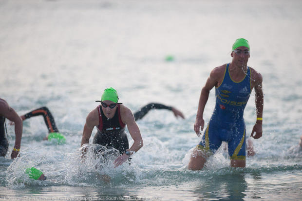 Javier Gomez and Sarah Haskins took the wins at the 2012 Nautica South Beach Triathlon and while they walked away with nice winner checks and an early lead in the Race To The Toyota Cup, a really big check ended up in the hands of the St. Jude Children's Research Hospital.