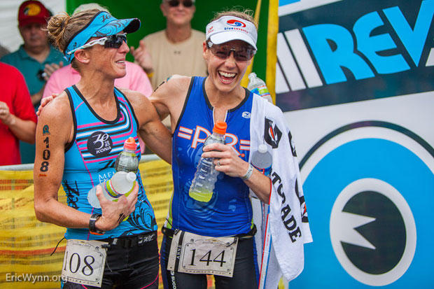 Kelly Williamson and Margaret Shapiro share a laugh post race.
