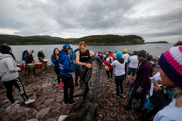 There was plenty of support at the swim exit and that included musical entertainment by Clann an Drumma a popular tribal band from Scotland.