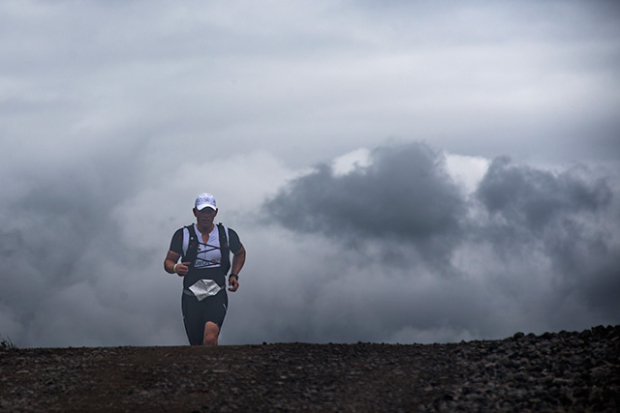 Wind and rain and cold temperatures made the event harder but most athletes hung in tough. David Fraser from Edinburgh on the way to 10th place in 14:04:20