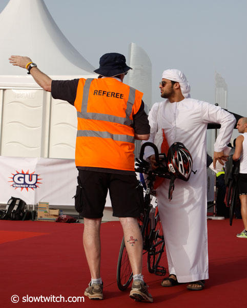 The last day before the 2012 Abu Dhabi Triathlon was busy with athletes getting one more swim in and then it was time already to check-in the race bikes into transition.